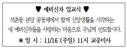 ¿¹ºñ½ÅÀÚ ÀÔ±³½Ä 2025³â 11¿ù 16ÀÏ 11½Ã ±³Á߹̻ç