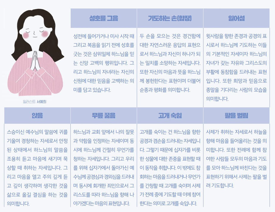 ¿ì¸®´Â ¹Ì»ç¸¦ ºÀÇåÇÒ ¶§ ´Ù¾çÇÑ ÇüÅÂÀÇ µ¿ÀÛÀ» ÃëÇÏ°Ô µË´Ï´Ù. ±âµµÇÏ´Â ¸¶À½¿¡¼ ÀÚ¿¬½º·´°Ô ÇØ¿Ô´ø µ¿ÀÛÀÌÁö¸¸ °¢°¢ÀÇ µ¿ÀÛÀº Àü·Ê ¾È¿¡¼ ÇÏ´À´Ô²²·Î ÇâÇÏ´Â ¿¹ÀýÀÌ¸ç ±íÀº ¸¸³²ÀÇ Ç¥Çö ¹æ½ÄÀ¸·Î¼ ¾Æ·¡¿Í °°Àº »ó¡ÀûÀÎ Àǹ̸¦ Áö´Ï°í ÀÖ½À´Ï´Ù. ³Ê¹« ¸ö¿¡ ÀÍ¾î¼ Àͼ÷ÇØÁø ³ª¸ÓÁö ½À°üÀûÀ¸·Î ÇØ¿Ô´ø µ¿ÀÛµéÀÇ Àǹ̸¦ »ìÆìº¸¸é¼ ´Ù½Ã±Ý ¸¶À½À» ¸ð¾Æ Á¤¼º²¯ ¸ö°ú ¸¶À½À¸·Î ±âµµÇÒ ¼ö ÀÖÀ¸¸é ÁÁ°Ú½À´Ï´Ù.